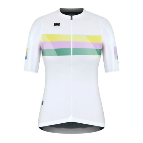 Maglia ciclismo Sportful Flow Supergiara W Jersey: design astratto, tessuto traspirante, 6 tasche, ideale per strade sterrate. Perfetta per cicliste professioniste. Maglia ciclismo Sportful Flow...