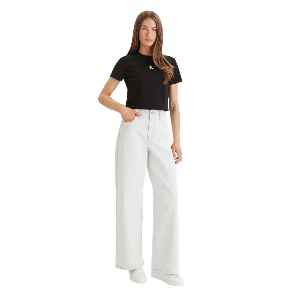 Elegante t-shirt Calvin Klein in waffle bianco per donna. Comfort e stile minimalista, perfetto per ogni occasione. Tessuto morbido e di alta qualità. Elegante t-shirt Calvin Klein in...