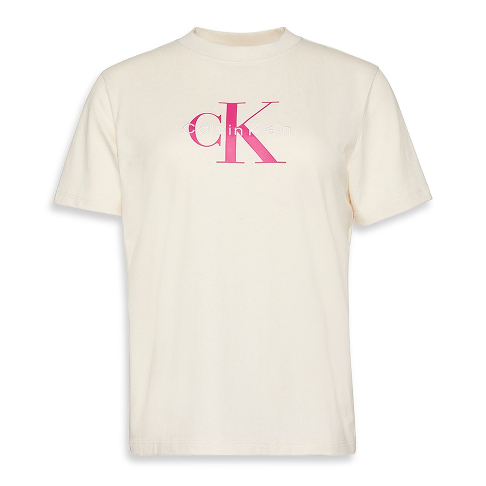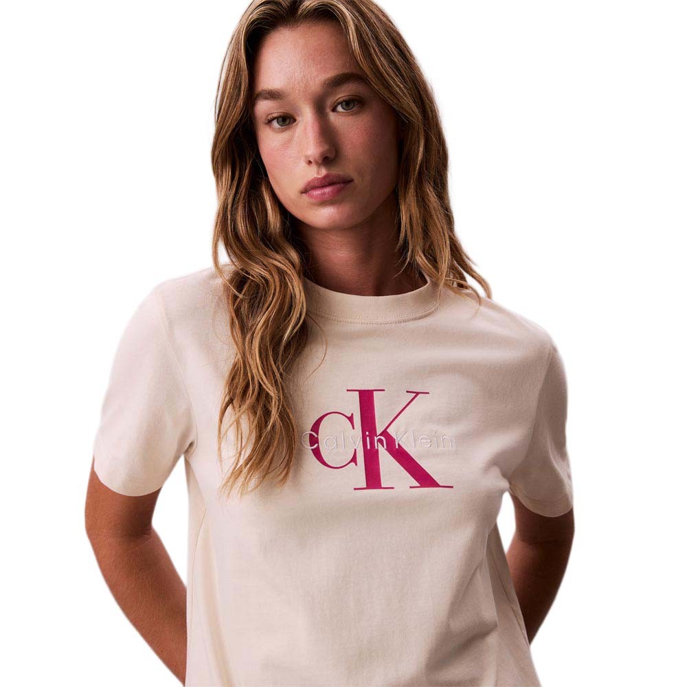 Elegante t-shirt Calvin Klein in waffle bianco per donna. Comfort e stile minimalista, perfetto per ogni occasione. Tessuto morbido e di alta qualità. Elegante t-shirt Calvin Klein in...
