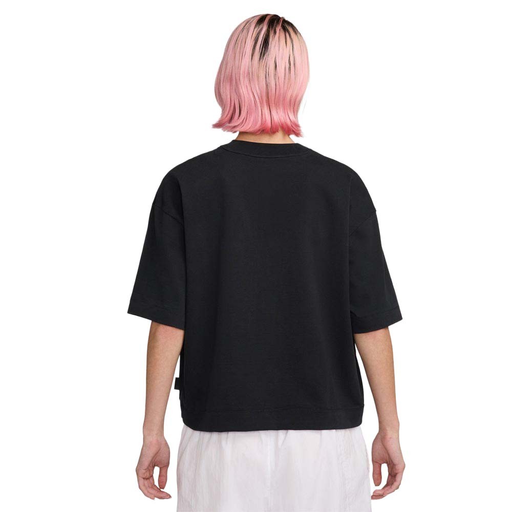 La t shirt Nike Sportswear cropped nera reinterpreta la classica t shirt in chiave boxy. Il cotone di peso medio è morbido ma leggermente strutturato, creando una silhouette oversize corta perfetta per vita alta e layering. Il design sobrio e confortevole la rende un essenziale versatile, ideale con tute, jeans e cargo.
