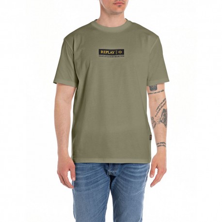 T-Shirt Replay da uomo verde militare con scollo tondo e vestibilità regolare.