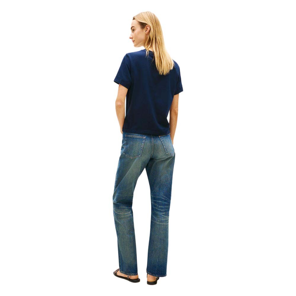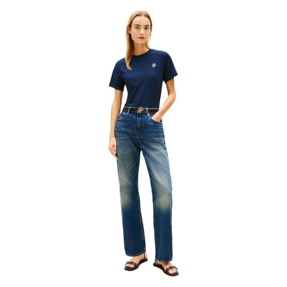 Perfetta per il guardaroba casual femminile, questa t shirt Tommy Hilfiger Script porta la firma del brand in stile lettering per un look riconoscibile e contemporaneo. La tonalità blu si abbina facilmente a jeans e shorts, mentre la scritta script aggiunge un tocco distintivo. Una t shirt essenziale per chi ama lo stile americano classico.Tommy Hilfiger T-Shirt Script Blu Donna