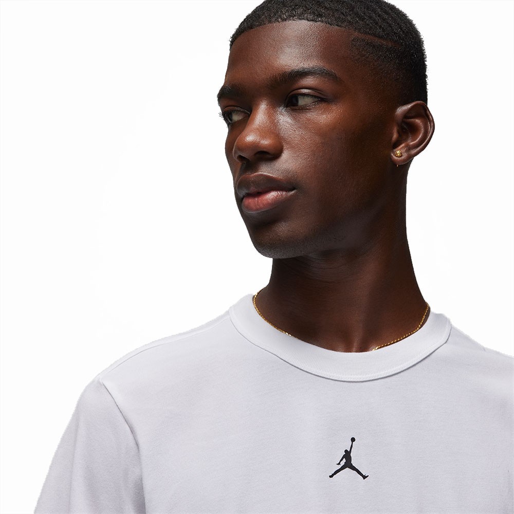 La tecnologia Nike Dri-FIT della T-Shirt Nike Logo Centrale Jordan allontana il sudore per favorirne una rapida evaporazione e mantenere la pelle asciutta per un comfort ideale. Jumpman minimalista serigrafato per un look essenziale.