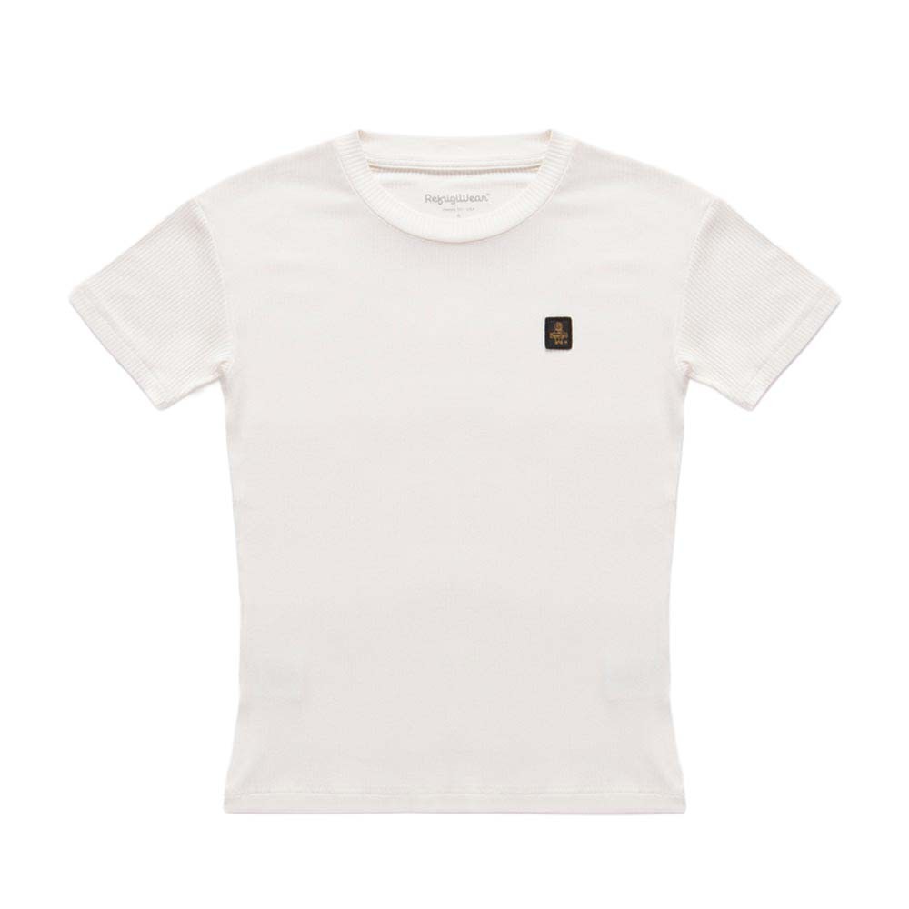 T shirt Refrigiwear Tila da donna in morbido cotone bianco a tinta unita, perfetta come base per outfit quotidiani. Vestibilità femminile con girocollo e maniche corte, tessuto leggero e traspirante ideale per la stagione calda, piccolo logo discreto che aggiunge un tocco riconoscibile senza risultare eccessivo. Facile da abbinare a jeans gonne o pantaloni casual.