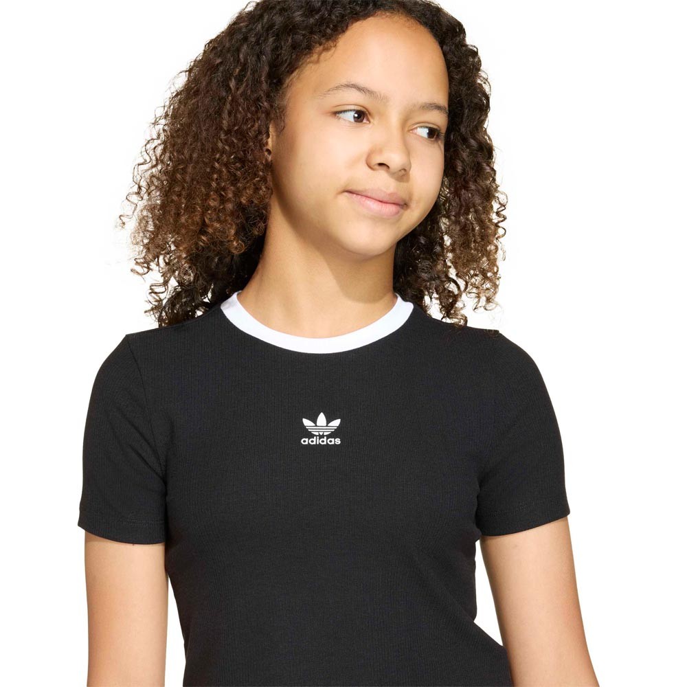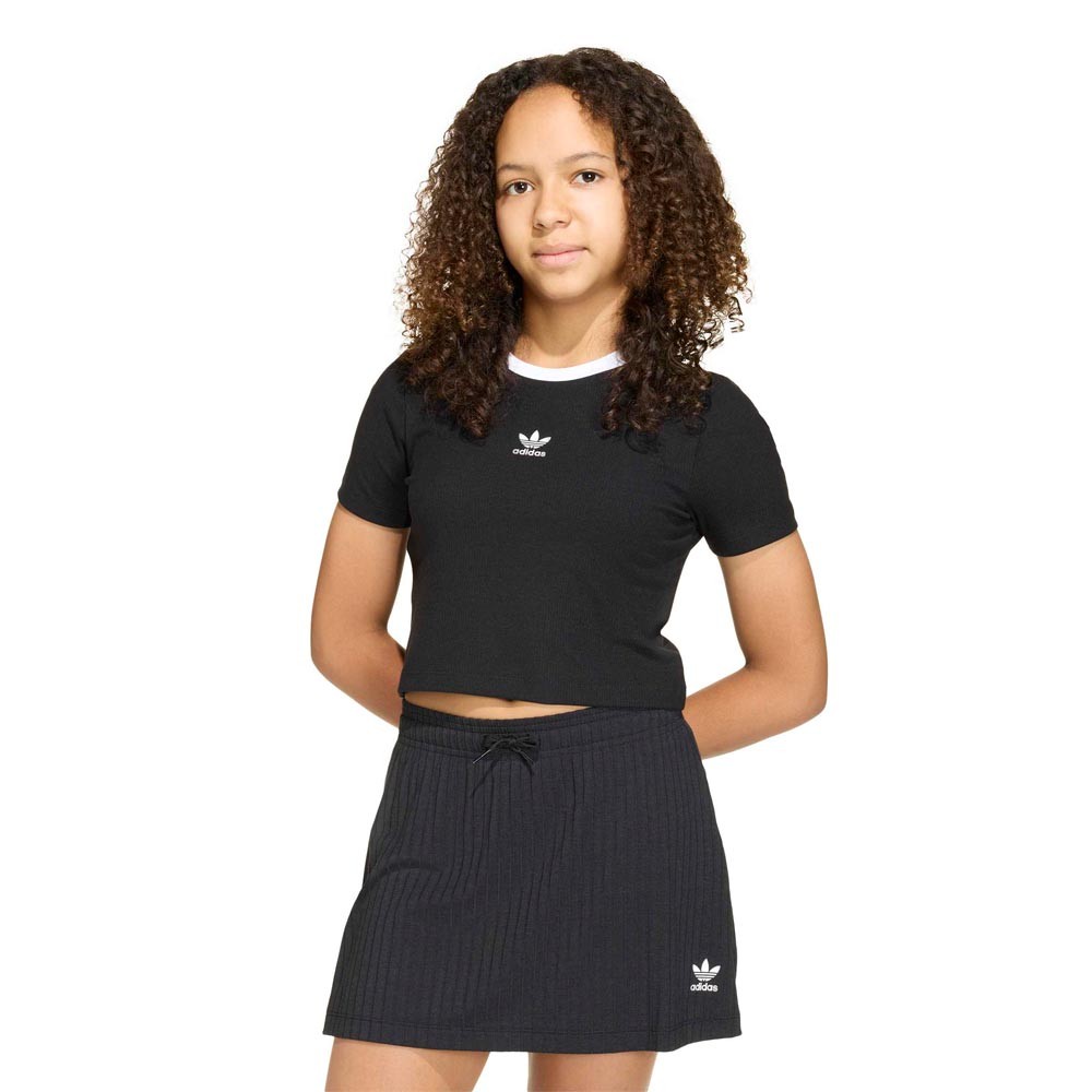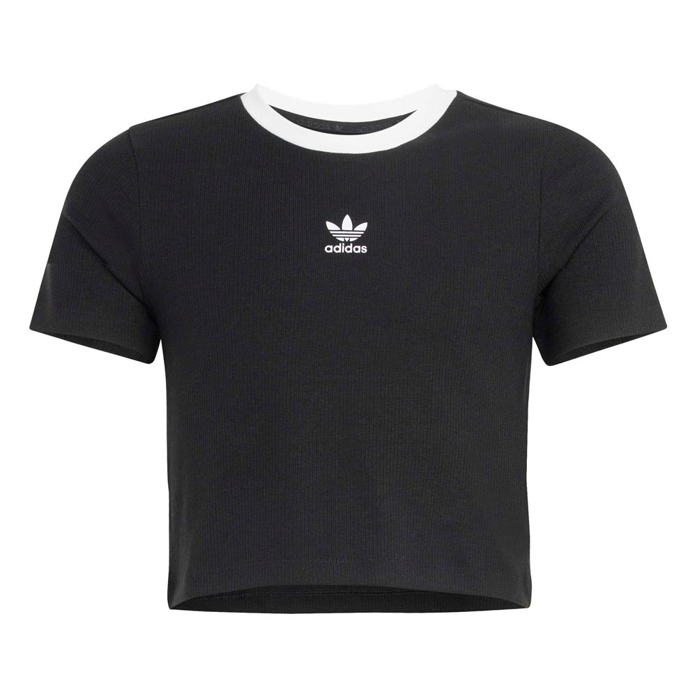 La Tight Mini Rib crop nera unisce una linea attillata a un’estetica minimal strong. Il materiale a coste elasticizzato segue i movimenti senza perdere la forma, mentre il girocollo dona un tocco classico. La stampa ad alta densità del logo stacked sul petto firma il look Originals, rendendo questa tee perfetta per outfit a strati o come pezzo protagonista.