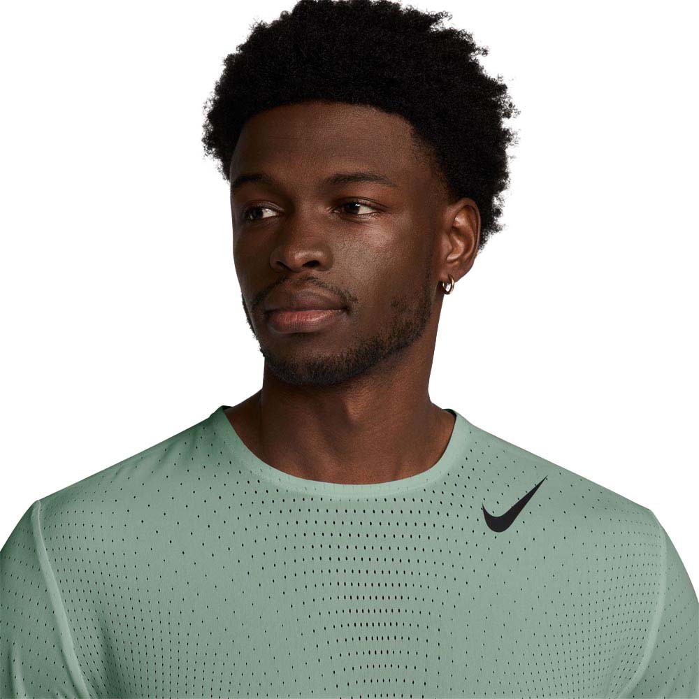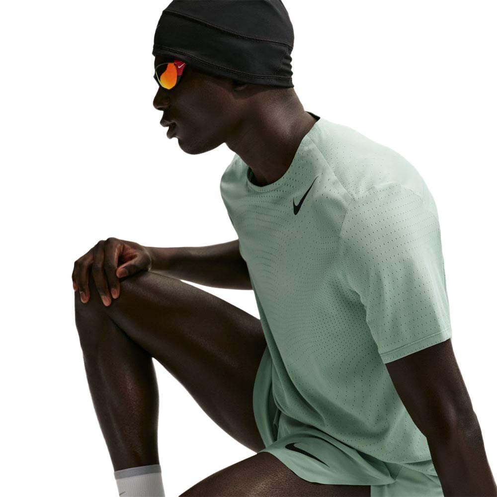 Pensata per la velocità e il traguardo, la Maglia Running Nike AeroSwift uomo Steam Nero in 100 per cento poliestere con tessuto tecnico a maglia ultraleggero e traspirante e tecnologia Dri-FIT ADV mantiene la pelle fresca fino alla fine. Le cuciture termosaldate sulle spalle riducono ingombro e peso, mentre il logo Swoosh con finitura non rifrangente protegge dai flash durante le gare completando un top da racing essenziale.