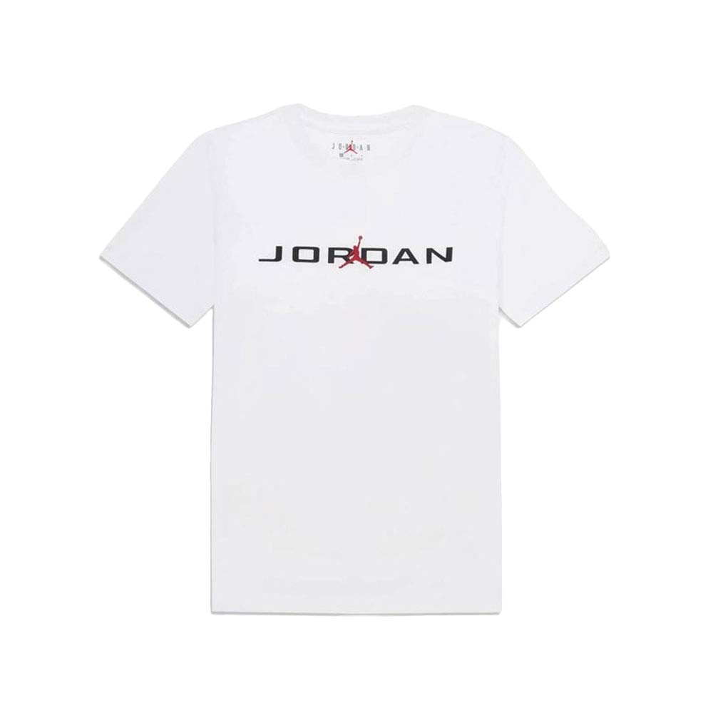T-shirt Nike Jordan bianca per bambino. Iconico logo Global Arch, stile e comfort per i piccoli campioni! Perfetta per tutti i giorni. T-shirt Nike Jordan bianca per...