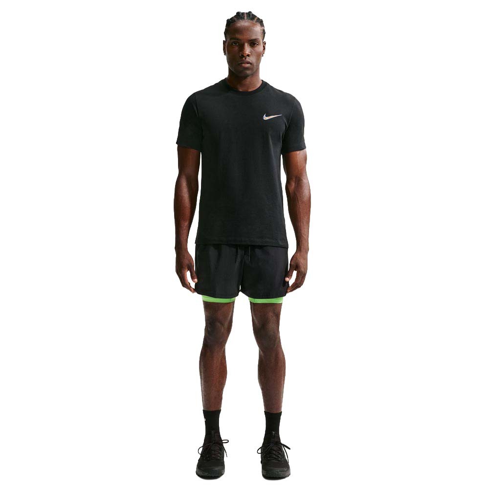 Pantaloncini running Nike Stride 5 inch Hybrid 2 in 1 neri da uomo, con strato woven e interno in spandex, pensati per massima elasticità e spazio intelligente. Pantaloncini running Nike Stride 5...