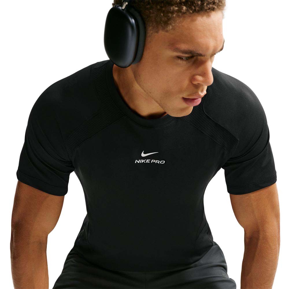 La maglietta palestra Nike Pro Training nera replica la struttura avanzata della versione lime in una palette essenziale. Il tessuto leggero in poliestere con tecnologia Dri FIT ADV mantiene la pelle asciutta grazie a zone di aerazione posizionate nelle aree più soggette a sudore, mentre le cuciture termosaldate aumentano comfort e resistenza. Il taglio slim segue il corpo senza limitarlo, con orlo arrotondato e tasca laterale per portare con sé ciò che conta.