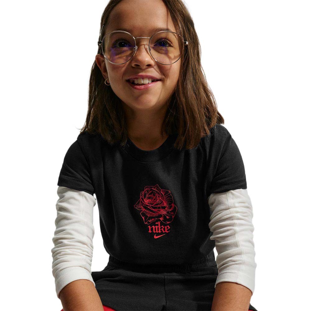 La maglietta palestra Nike Sportswear Big Kids cropped tee nera è il capo giusto quando vuole dare più grinta al suo look. Il cotone everyday è morbido e leggero, mentre il taglio corto è pensato per abbinarsi ai pantaloni a vita alta. Comoda ma d’impatto, è la t shirt da scegliere quando il basic non basta.