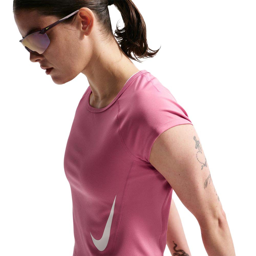 Nike Swift Maglia Running Lt Magenta donna Dri-FIT con maniche raglan pannello mesh sul retro e grafiche rifrangenti sui lati Nike Swift Maglia Running Lt Magenta...