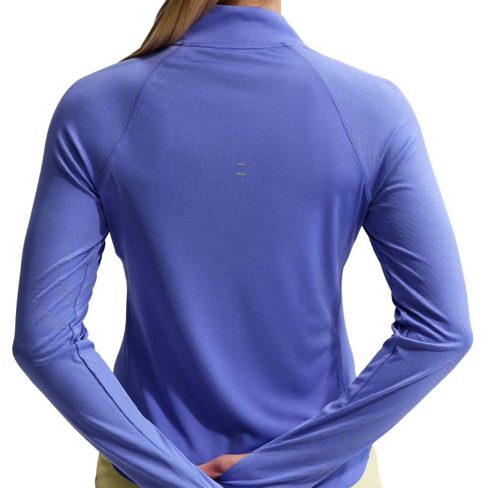 Maglia running Nike Swift sapphire da donna con zip a 1/4 Dri-FIT UV, strato intermedio leggero e traspirante per lunghe uscite in montagna e su strada. Maglia running Nike Swift sapphire da...