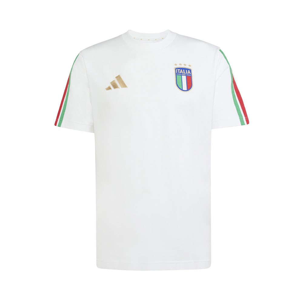 Realizzata in morbido cotone jersey, questa maglia offre leggerezza e comfort per l'uso quotidiano. La vestibilità regolare e lo scollo a girocollo creano una silhouette versatile e adatta a ogni occasione, mentre i dettagli iconici come il logo ADIDAS Performance e lo stemma della FIGC esprimono con orgoglio la passione per la Nazionale.