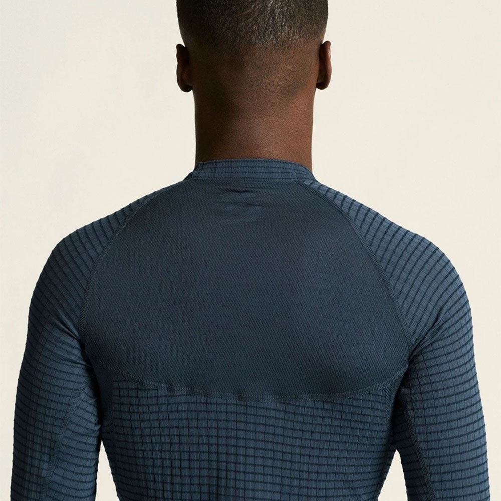 La lana merino, mulesing-free, garantisce termoregolazione costante e proprietà anti-odore naturali, mentre gli inserti in mesh migliorano la ventilazione nei punti strategici. L’elasticità del tessuto e il design ergonomico permettono movimenti fluidi e confortevoli, rendendo questo capo un compagno affidabile per sport invernali come sci di fondo e running.