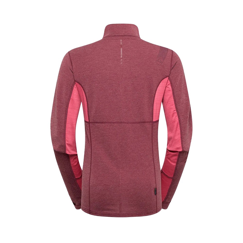 Il trattamento Polygiene® anti-odore e antibatterico garantisce freschezza prolungata, mentre l’apertura frontale a mezza zip con doppio cursore consente di regolare la ventilazione in modo dinamico. La nuova costruzione del polsino con funzione “guanto integrato” offre protezione extra e comfort nelle fasi più fredde dell’attività. Il tessuto elasticizzato in poliestere riciclato e Tencel assicura libertà di movimento e sostenibilità.