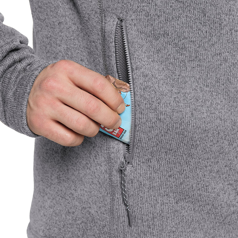 Dotata di due tasche laterali con zip e un’ulteriore tasca sul petto, offre spazio pratico per mani e piccoli oggetti essenziali. I polsini e l’orlo elasticizzati trattengono il calore e garantiscono una vestibilità stabile, ideale sia come strato unico che sotto una giacca durante attività outdoor.