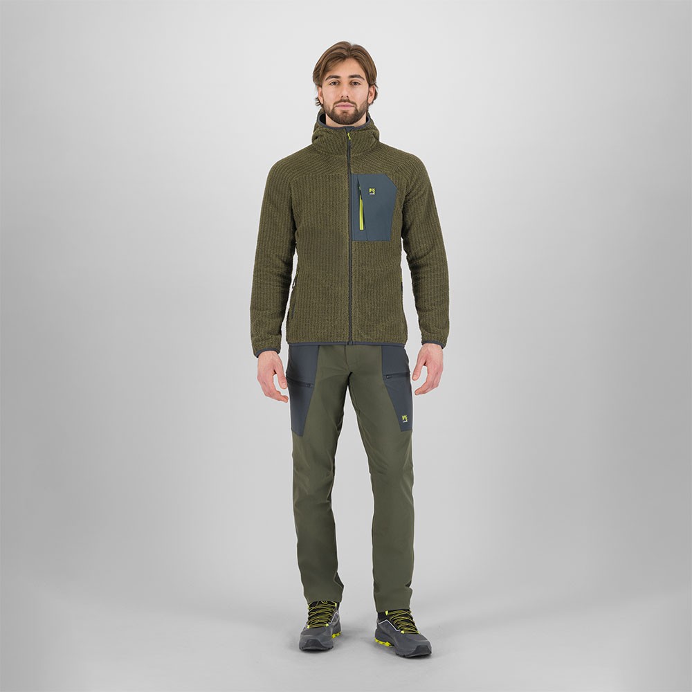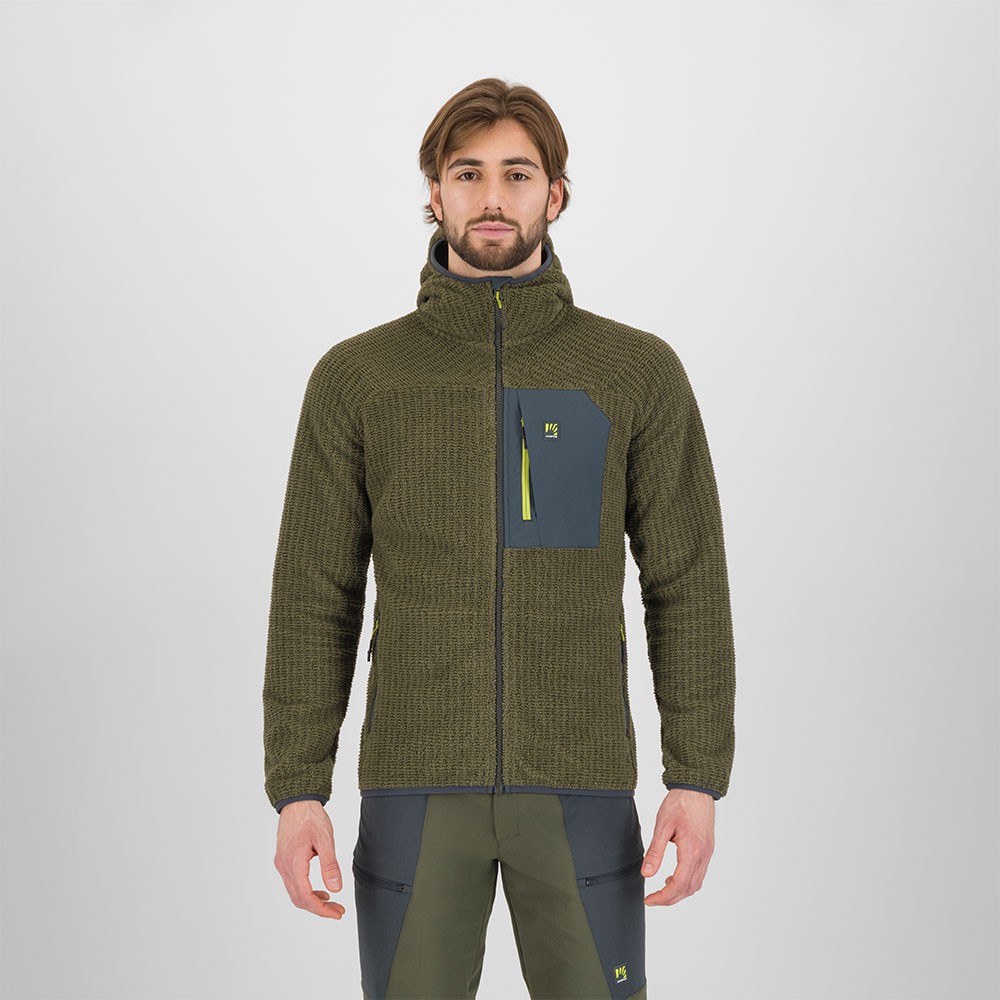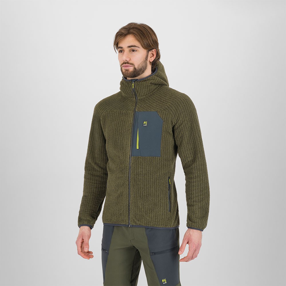Dettagli funzionali come le due tasche frontali con zip, la tasca sul petto e le rifiniture elastiche su busto, maniche e cappuccio, completano un capo resistente e affidabile. La Karpos Rocchetta Hoodie Fleece è la scelta perfetta per chi cerca versatilità e stile in un pile tecnico sostenibile.