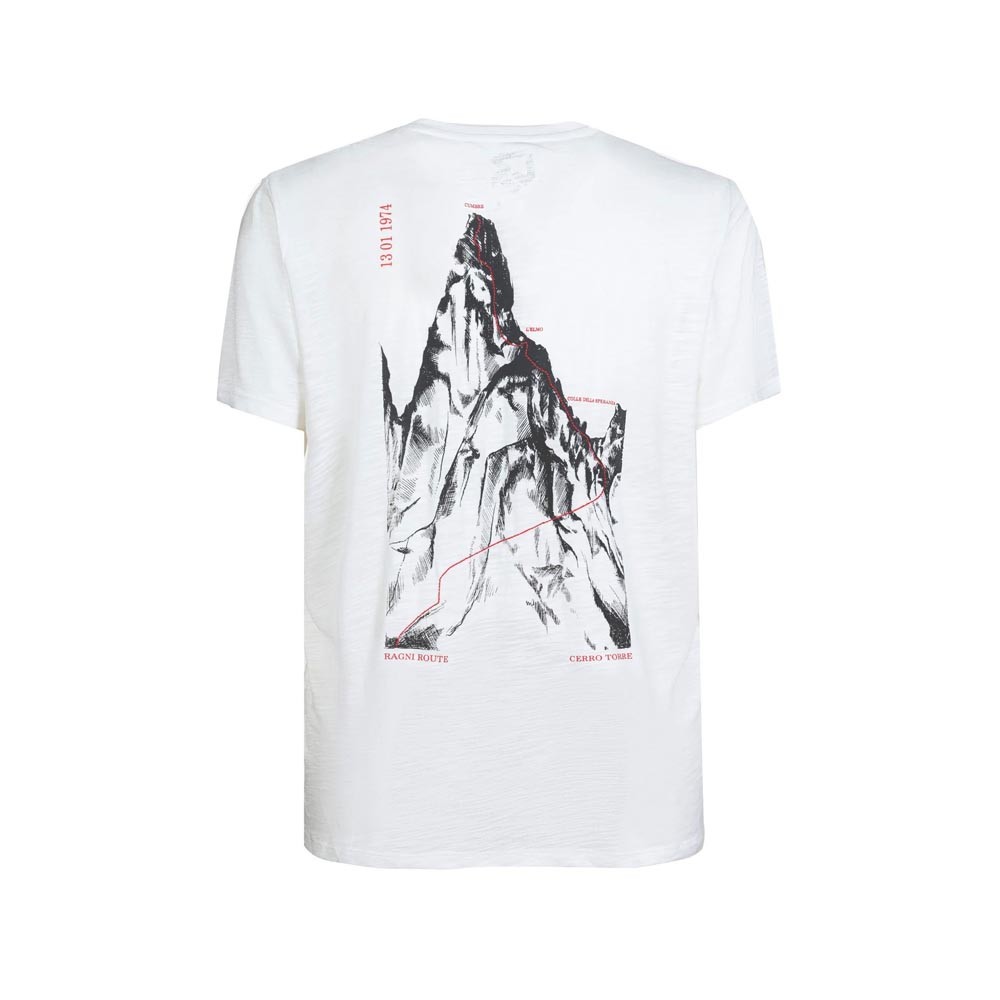 Realizzata in cotone biologico per celebrare il 50° anniversario della via dei Ragni di Lecco sul Cerro Torre in Patagonia, questa t shirt trekking Rock Experience Anniversary omaggia la prima salita della vetta del 1974 con una stampa sul retro arricchita da ricamo che ripercorre la via storica. La grafica sul petto e la bridge label completano un capo collezionabile per gli amanti dell arrampicata.