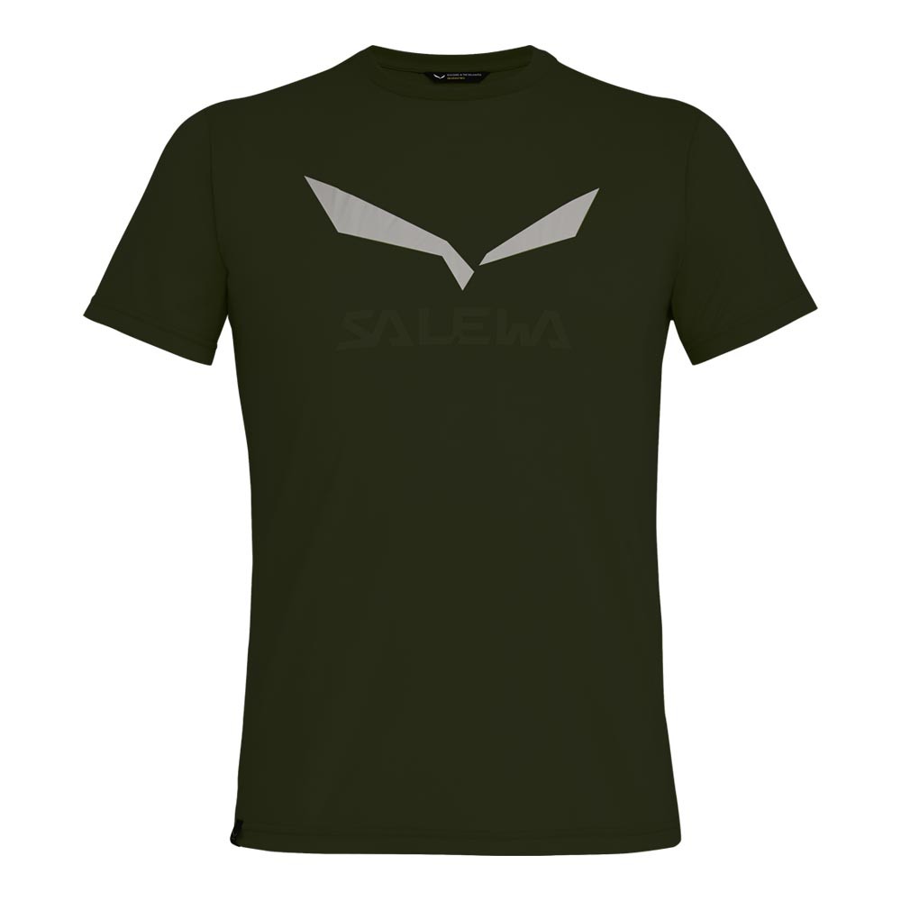 Essenziale e immediata come uno sguardo sulla montagna, la T-Shirt Trekking Solidlogo Dry Salewa Dark Olive in cotone drirelease stretch porta il logo aquila iconico del brand su un tessuto che asciuga quattro volte più velocemente del cotone convenzionale. Il girocollo classico e la vestibilità comoda la rendono perfetta per hiking trekking e le giornate outdoor di ogni tipo.