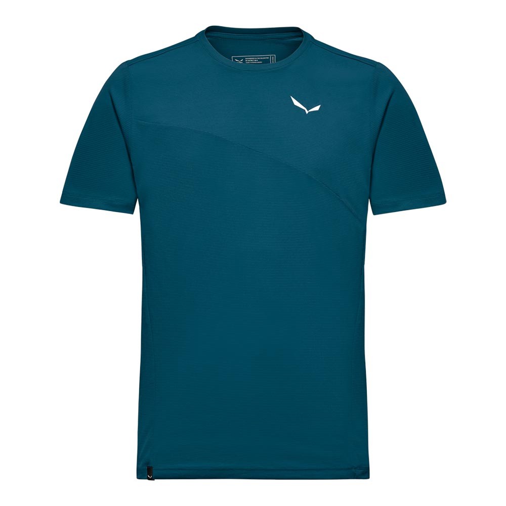 Leggera e reattiva come i sentieri di montagna che la ispirano, la T-Shirt Trekking Sporty Dry Salewa Pound Blue in Dry'ton con 83 per cento di poliestere riciclato offre asciugatura rapida e gestione ottimale del sudore per escursionismo e trekking alpino. La finitura naturale anti odore garantisce freschezza prolungata per un prodotto outdoor sostenibile e di qualità.