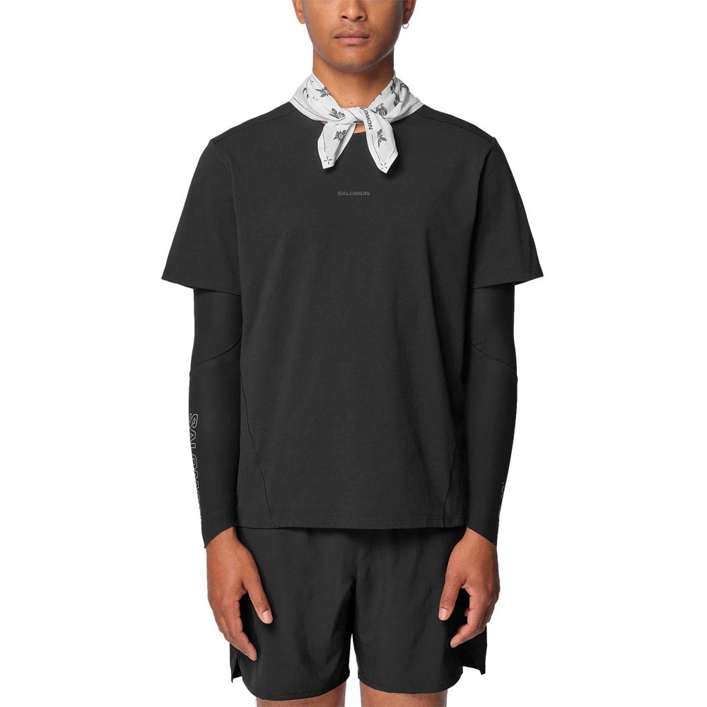 Versatile e minimalista per la città e la montagna, la T-Shirt Trekking Trackline Salomon uomo in 100 per cento poliestere con 50 per cento di fibre riciclate unisce resistenza e freschezza grazie al trattamento antibatterico Ionic che riduce i cattivi odori in ogni situazione. Il design minimalista e i dettagli di alta qualità completano una t shirt da 126 g polivalente e intramontabile per escursionismo e uso quotidiano.