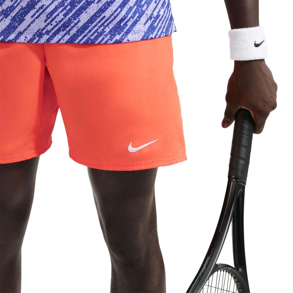 La versione arancio e bianco dei NikeCourt Victory shorts offre lo stesso mix di leggerezza e resistenza con un tocco di colore. Il tessuto morbido e durevole in poliestere e la tecnologia Dri FIT mantengono la pelle asciutta nei momenti chiave, mentre l’elastico con coulisse in vita permette di trovare la calzata ideale. Le tasche in mesh laterali sono pensate per le palline, così resti concentrato sul gioco, non sulla gestione dell’attrezzatura.