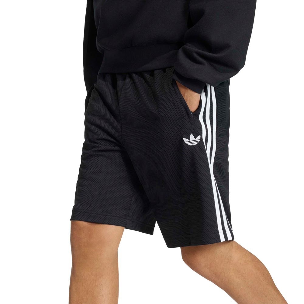 Gli Adicolor mesh shorts neri reinterpretano l’iconica linea Firebird in chiave contemporanea. La vestibilità ampia e la lunghezza generosa assicurano libertà di movimento e un look rilassato, mentre il girovita con cordino regolabile mantiene il fit stabile. Il tessuto in poliestere riciclato con lavorazione effetto traforato aggiunge texture e traspirabilità, perfetto per giornate casual e relax.