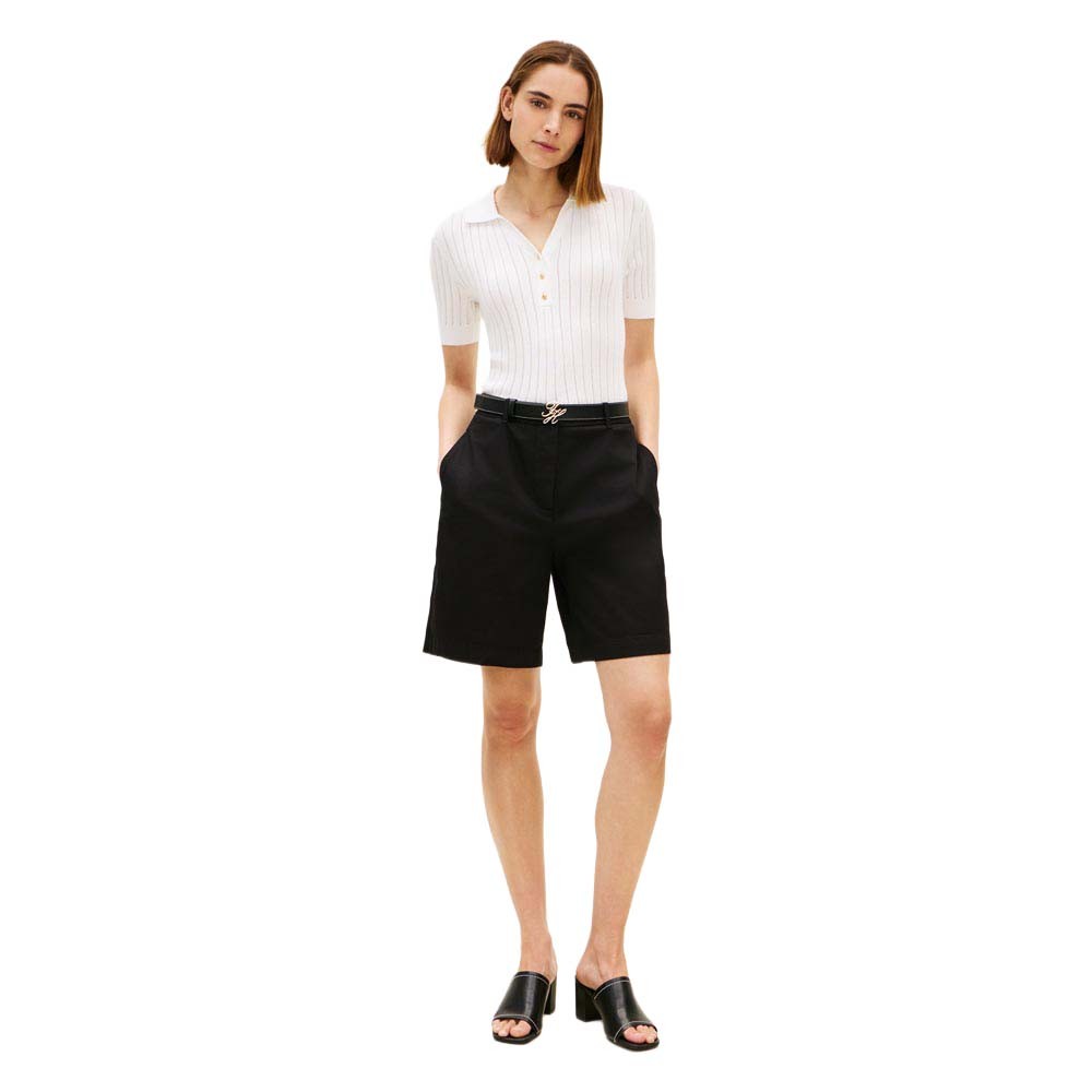 Ideale per look estivi con carattere, questa bermuda chino Tommy Hilfiger in tonalità nera unisce praticità e stile contemporaneo. Il taglio classico e il tessuto chino la rendono versatile per abbinamenti casual e smart casual, mentre il nero si adatta a qualsiasi top e accessorio. Una bermuda chino elegante per chi non rinuncia allo stile anche d estate.