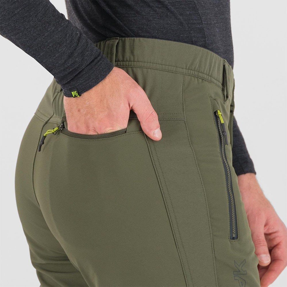 La costruzione ibrida utilizza tessuti K-Stretch: felpato sul davanti per garantire isolamento termico, leggero ed elastico sul retro per offrire massima traspirabilità anche durante gli sforzi più intensi.