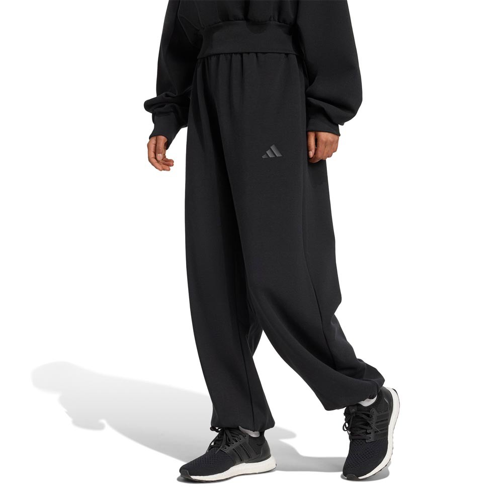 Il tessuto spacer effetto velluto con modal di questi Pantaloni adidas regala una sensazione ultra morbida e fresca sulla pelle, mentre la vestibilità ampia e le gambe larghe disegnano una silhouette fluida e raffinata. La chiusura con cordino in vita permette di personalizzare il fit, i bordi alle caviglie aggiungono definizione senza rinunciare al comfort e il 3 Bar Logo tono su tono racconta la firma adidas, con protezione UPF 50 plus e materiale cool touch.