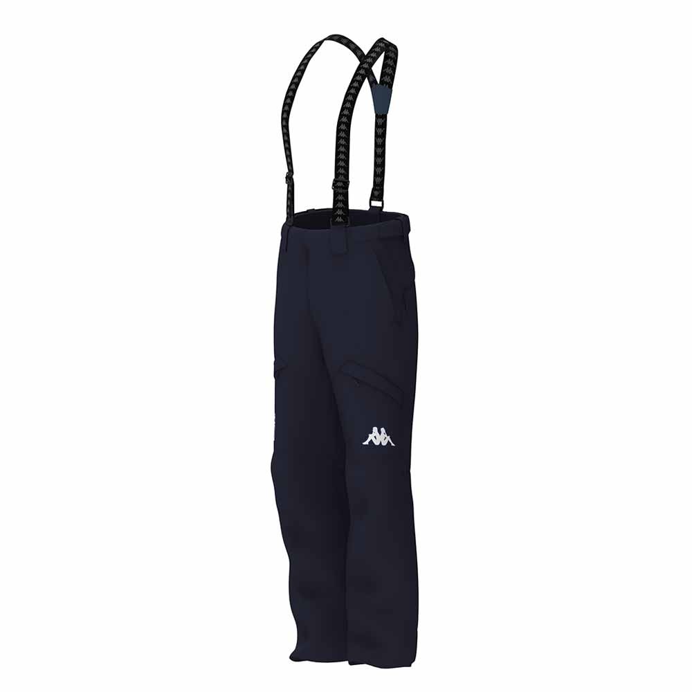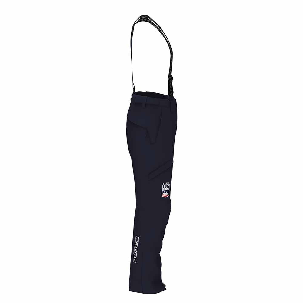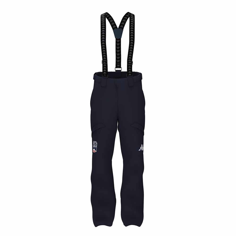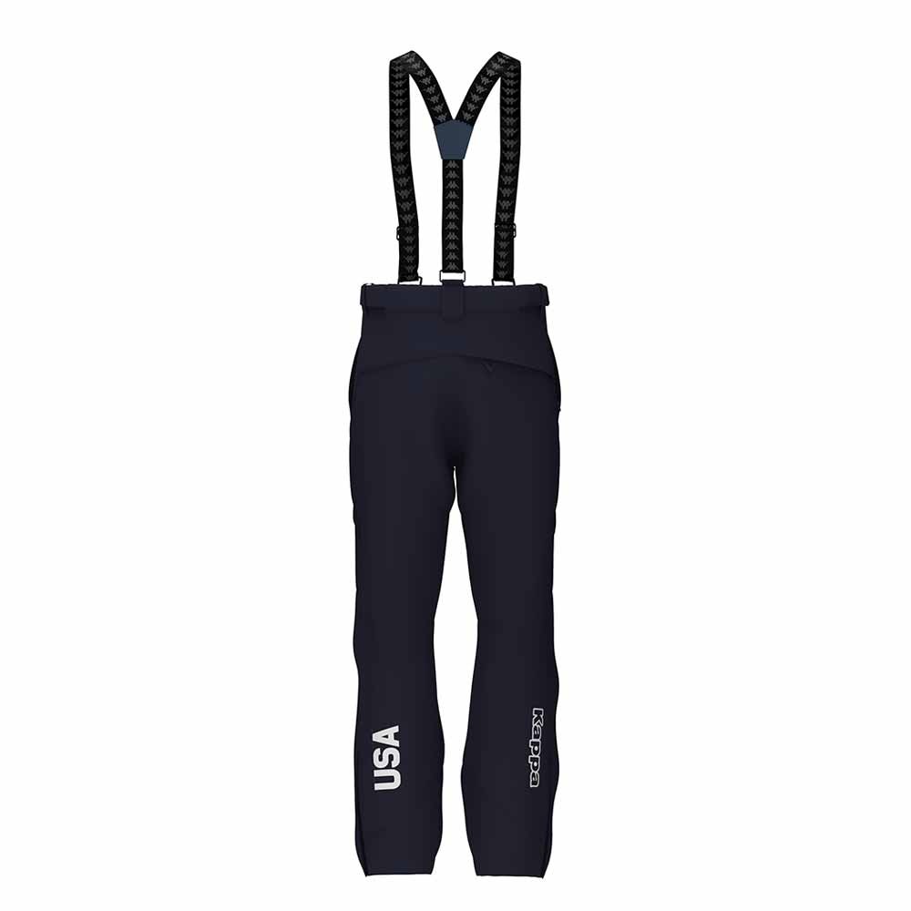 Pantaloni da sci imbottiti da uomo Kappa 6CENTO 622C USA Blu GARA. Realizzati in tessuto 2 strati stretch meccanico con tecnologia WATERPROOF PROTECTION 20.000 mm H2O e BREATHABILITY 20.000 g/m²/24h, garantiscono protezione e comfort. Il trattamento idrorepellente PFC Free e l'imbottitura Fellex® 80gr offrono calore e sostenibilità. Dotati di bretelle staccabili personalizzate, apertura fondo gamba con zip impermeabile e regolazione vita. Dispongono di tasche con zip e patta, rinforzi, ghette e cuciture termonastrate. Logo Omini applicato e personalizzazioni team US SKI AND SNOWBOARD.
