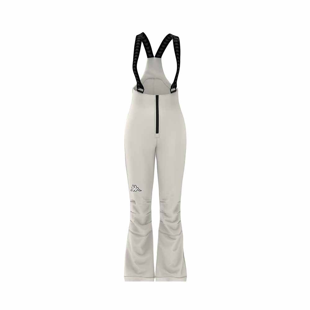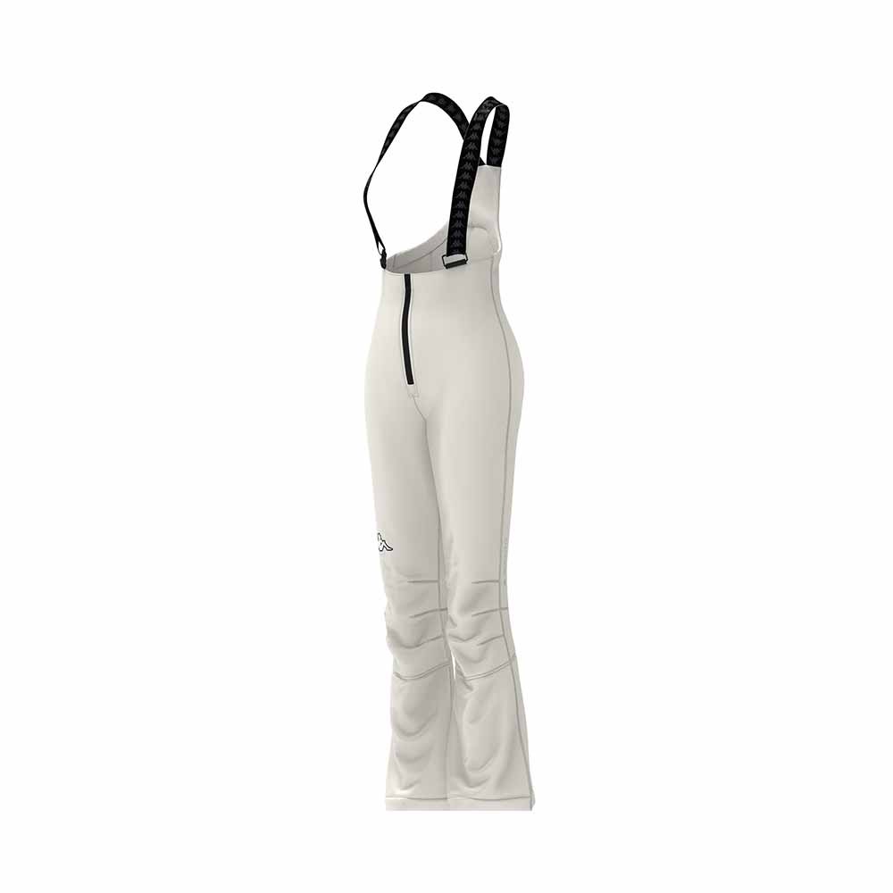 Affronta le piste con stile e performance grazie ai pantaloni da sci Kappa 8CENTO 846. Modello da donna a vita alta, in elegante bianco, con vestibilità slim che valorizza la silhouette. Realizzati in tessuto tecnico a 3 strati, garantiscono impermeabilità (10.000 mm H2O) e traspirabilità (10.000 g/m²/24h) per un comfort ottimale. Il trattamento idrorepellente PFC Free protegge dall'umidità. Dettagli ricercati come le bretelle staccabili personalizzate con logo Banda e le ghette antineve integrate per un look impeccabile. Cuciture termonastrate per massima protezione.