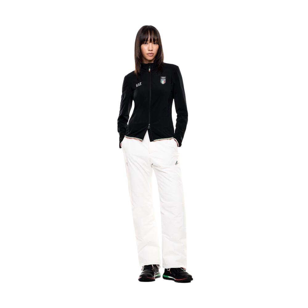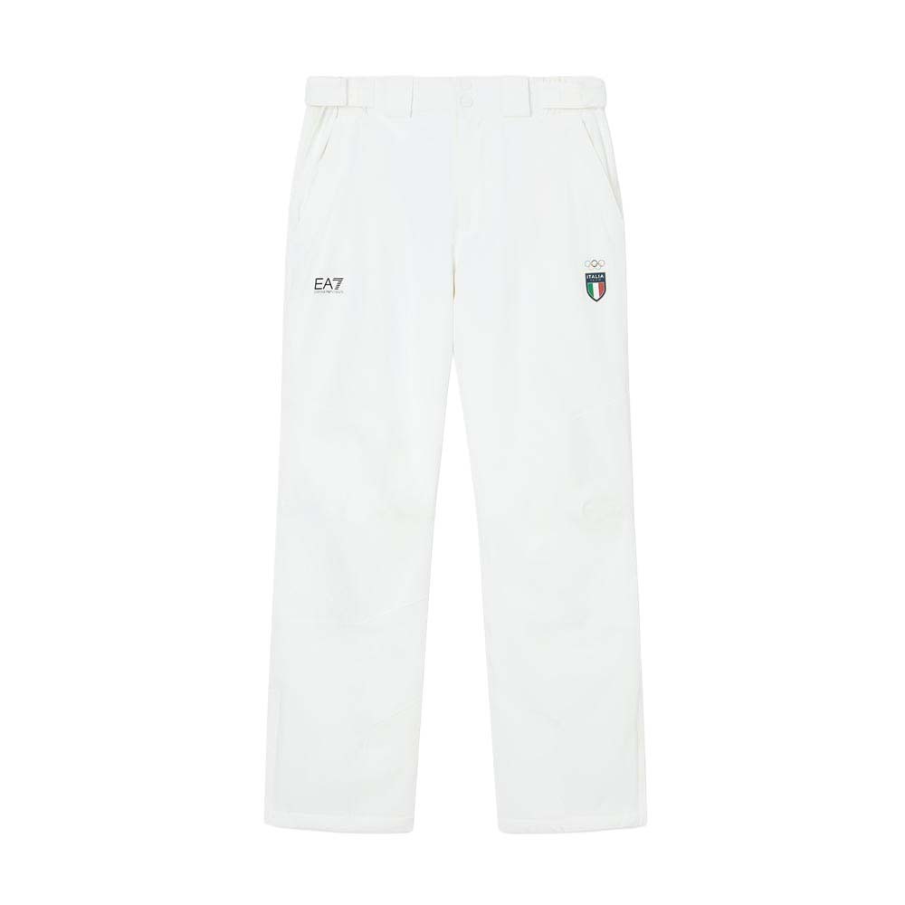 Scia con stile e protezione con i Pantaloni EA7 W Olympic Team bianchi. Il tessuto Protectum7 assicura impermeabilità (20.000mm) e morbidezza 4way stretch. L'imbottitura Stratum7 Recycled mantiene il calore ideale. Con pettorina removibile, vita regolabile e ghette interne, offrono funzionalità tecnica e comfort assoluto, celebrando l'Italia Team con i loghi ufficiali EA7 e CONI.