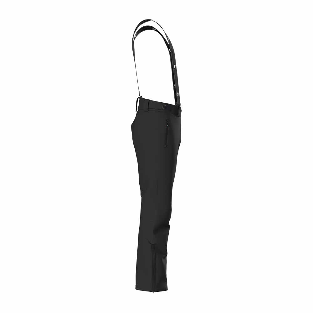 Pantaloni sci uomo Singen Nero, realizzati in tessuto RICICLATO bielastico per massima libertà di movimento. Impermeabili, traspiranti e antivento, grazie al trattamento WR Water Repellent e alla colonna d'acqua di 10.000 mm in 24 ore, garantiscono protezione ottimale in ogni condizione climatica. La traspirabilità di 10.000 gr / mq in 24 ore assicura comfort durante l'attività fisica. Cuciture termo nastrate, taglio ergonomico, tasche con zip, fondo apribile, ghetta antineve e bretelle removibili completano il capo. Vita regolabile con velcro.