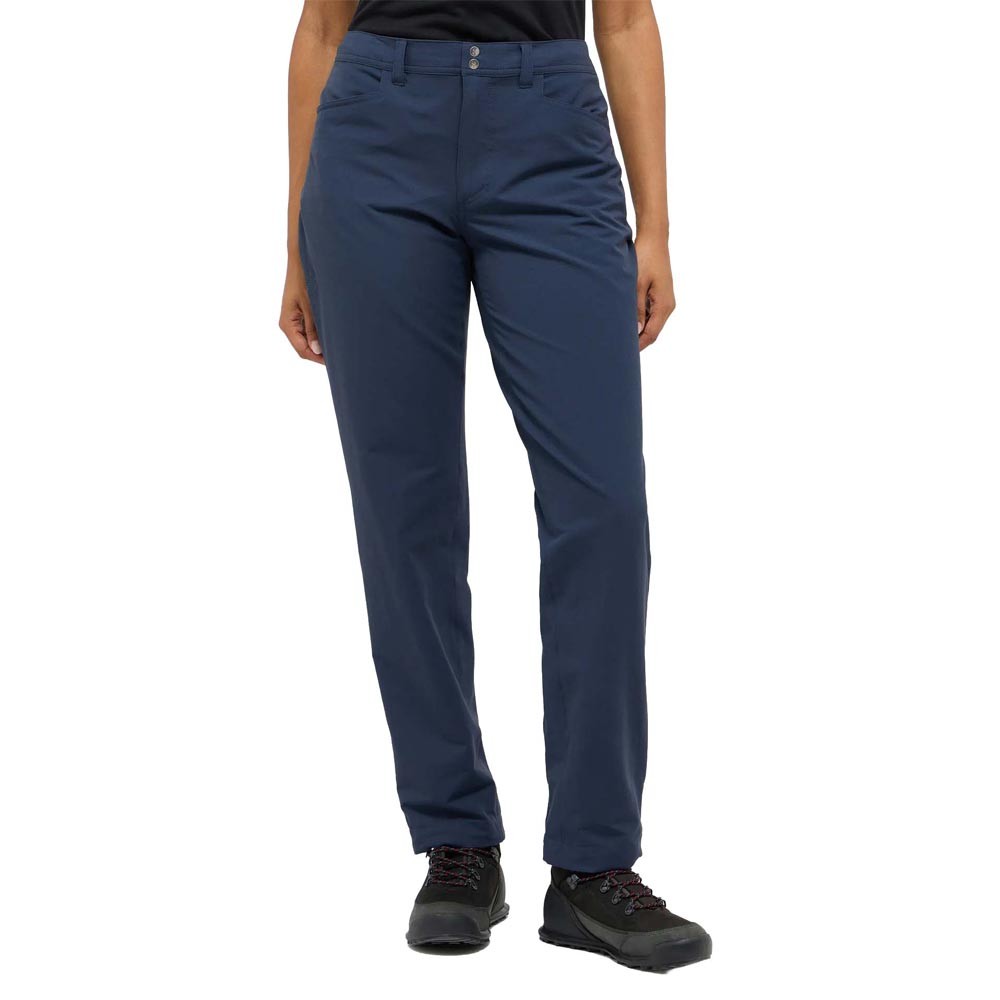 Pensati per le escursioniste che cercano comfort e praticità su ogni sentiero, i Pantaloni Trekking Haglofs Korp Lite donna Tarn Blue in ripstop 92 per cento poliammide riciclata e 8 per cento elastan bluesign con DWR senza PFAS offrono flessibilità e resistenza in un design versatile. La vita con elastico e passanti cintura, le due tasche a mano e il fondo gamba con cordino regolabile completano dei pantaloni da 279 g leggeri e sostenibili.