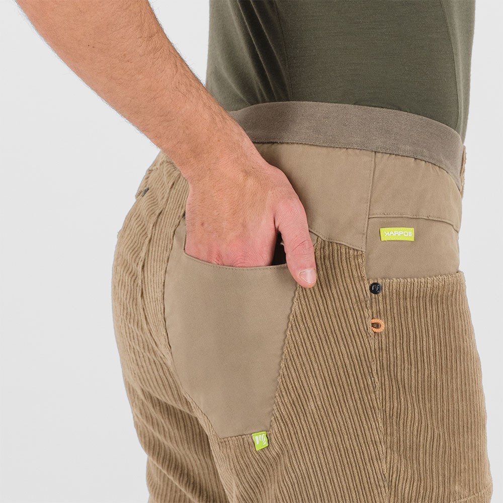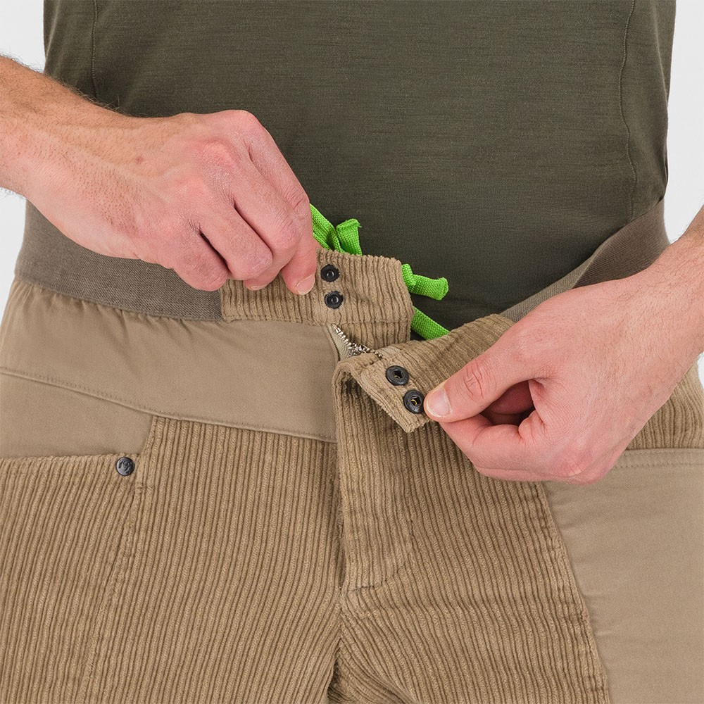 Le tasche aperte, anteriori e posteriori, sono studiate per non intralciare l’imbrago, mentre la vita elastica con bottoni assicura stabilità e vestibilità ottimale. Gli Abete Evo rappresentano la perfetta sintesi di design outdoor e versatilità urbana.