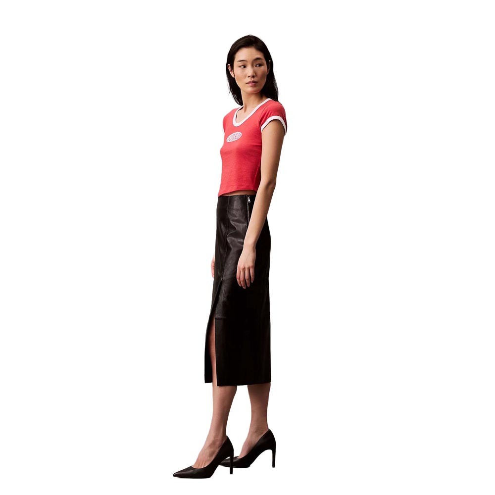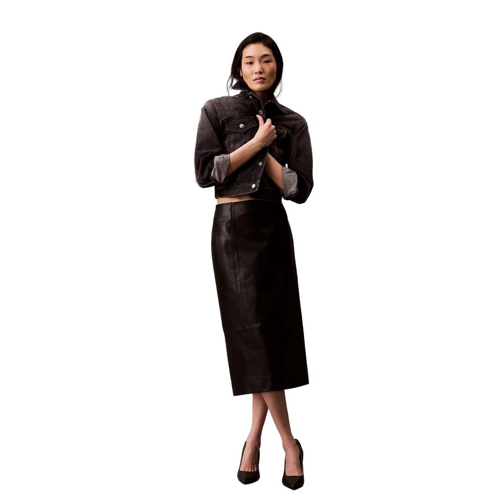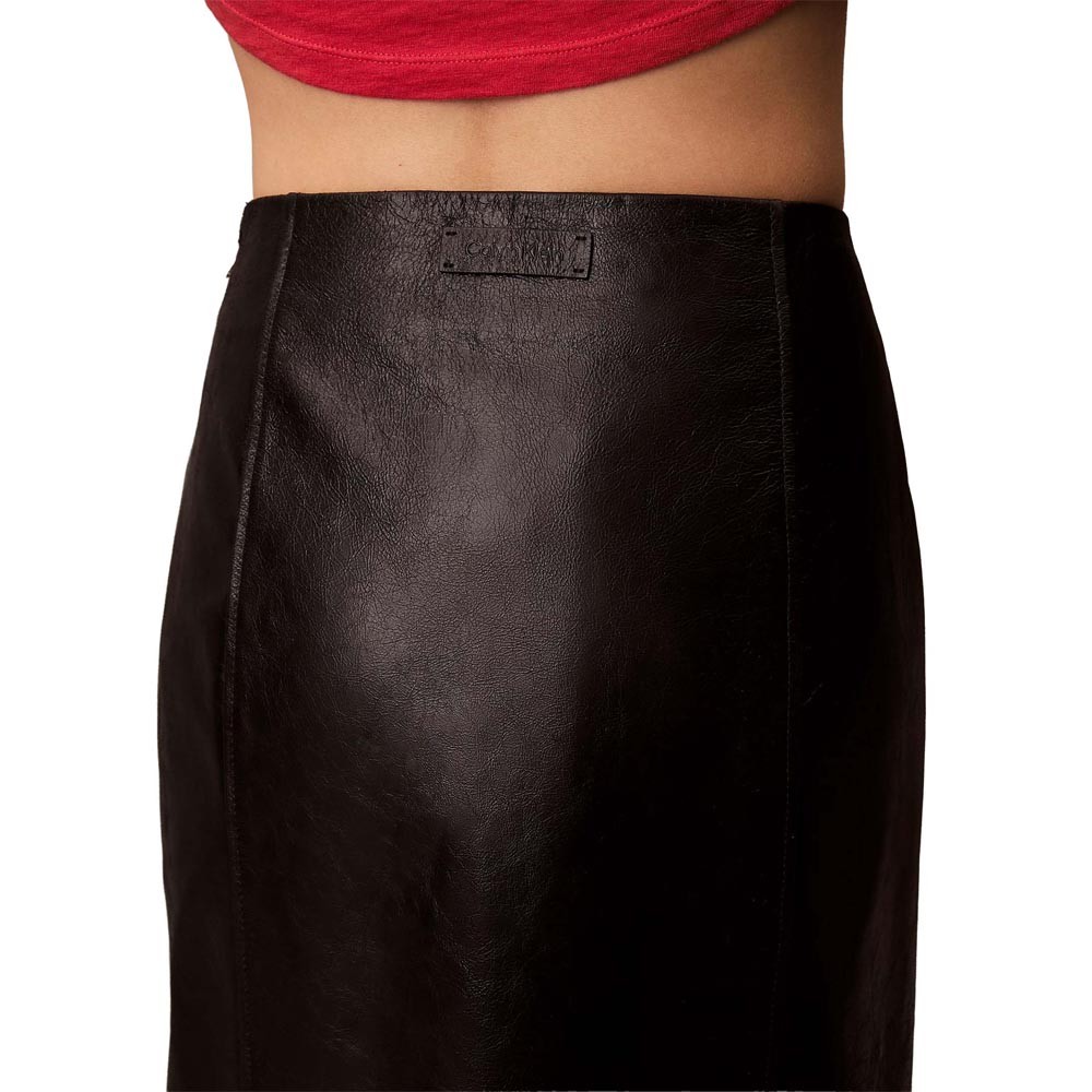Firmati Calvin Klein Studio, questi pantaloni cargo donna in pelle al cento per cento uniscono artigianalità e design contemporaneo. La vita alta e il taglio slim valorizzano la silhouette, mentre la zip laterale nascosta, lo spacchetto laterale e la fodera completa garantiscono comfort e praticità. Il patch con logo Calvin Klein completa un capo di lusso pensato per look di forte impatto.