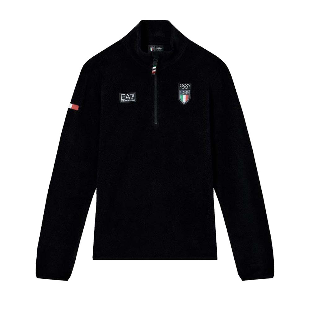 Affronta il freddo con il Pile EA7 W Olympic Team nero. Il tessuto polar fleece effetto pelliccia garantisce calore e morbidezza eccezionali. Caratterizzato da collo a lupetto con zip a 3/4 e una distintiva maxi patch "ITALIA" sul retro, unisce funzionalità tecnica e orgoglio nazionale. Perfetto per lo sci e il tempo libero, è un capo essenziale della collezione Milano Cortina 2026.