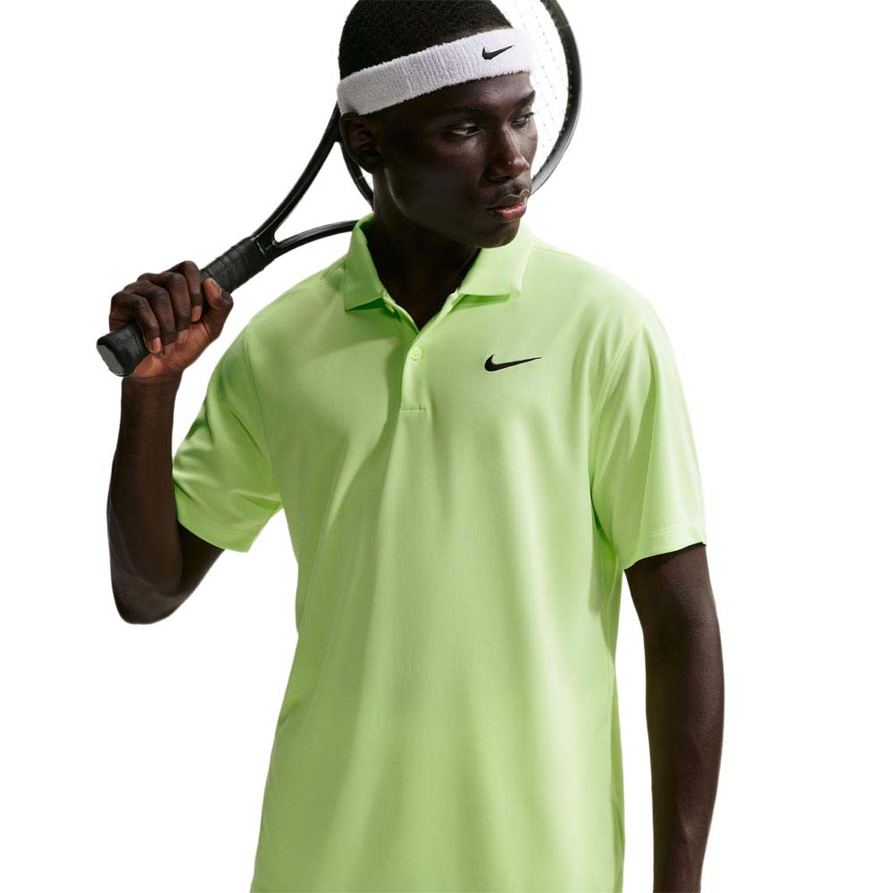 La NikeCourt Dri FIT polo Liquid Lime reinterpreta un classico da campo in chiave sostenibile. Il morbido tessuto in maglia 100 percento poliestere riciclato lavora con la tecnologia Dri FIT per allontanare il sudore e accelerarne l’evaporazione, mantenendo la pelle asciutta mentre giochi. Il colletto con risvolto, la pattina a due bottoni e il logo ricamato sul petto completano una polo che offre anche protezione dai raggi UVA e UVB nelle aree coperte.