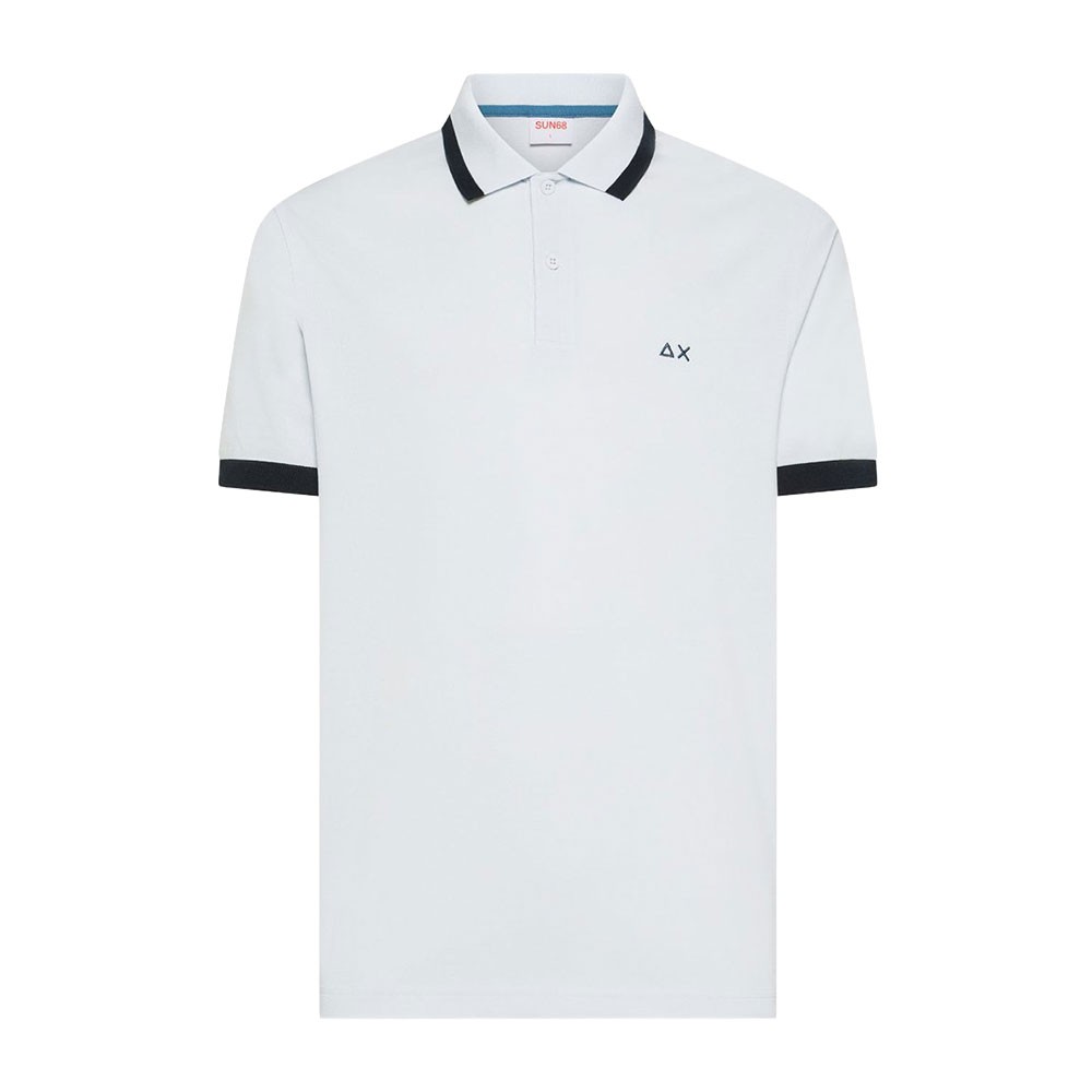 Sun 68 Polo Big Logo Fluo polo uomo in cotone stretch con ricamo 68 sulla manica e profili blu a contrasto Sun 68 Polo Big Logo Fluo polo uomo...