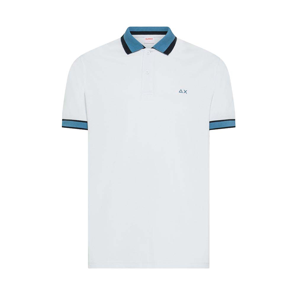 Sun 68 Polo Big Logo Fluo polo uomo in cotone stretch con ricamo 68 sulla manica e profili blu a contrasto Sun 68 Polo Big Logo Fluo polo uomo...