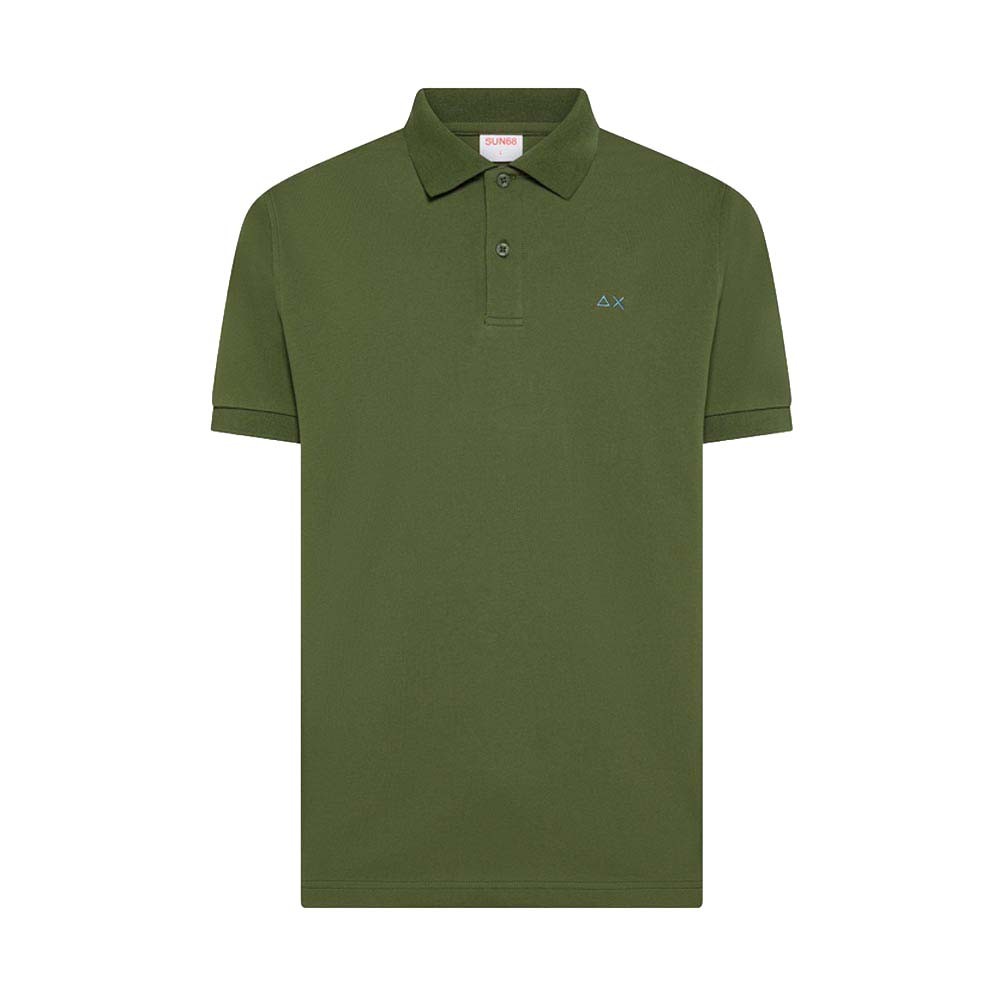 Sun 68 Polo Big Logo Fluo polo uomo in cotone stretch con ricamo 68 sulla manica e profili blu a contrasto Sun 68 Polo Big Logo Fluo polo uomo...