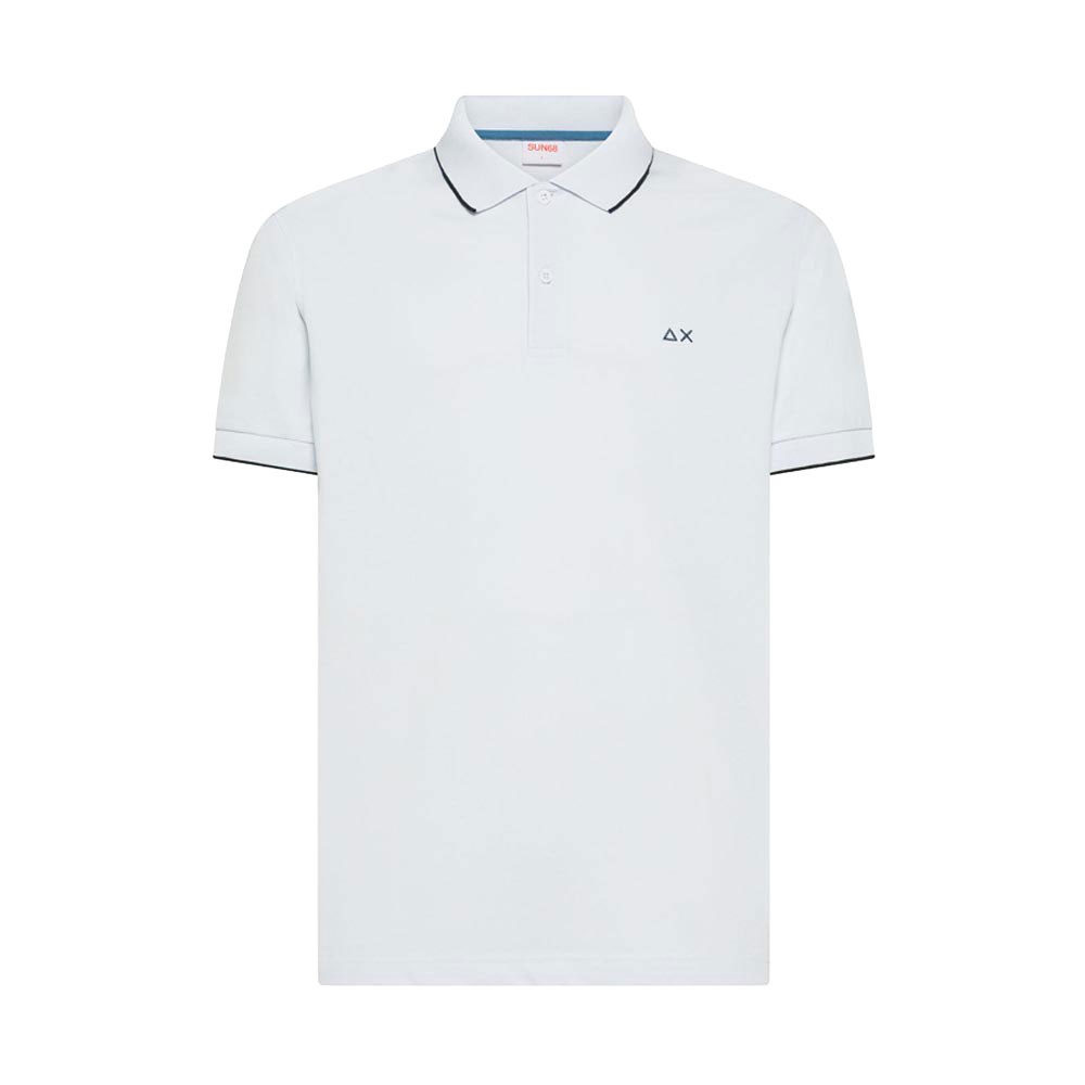 Sun 68 Polo Big Logo Fluo polo uomo in cotone stretch con ricamo 68 sulla manica e profili blu a contrasto Sun 68 Polo Big Logo Fluo polo uomo...