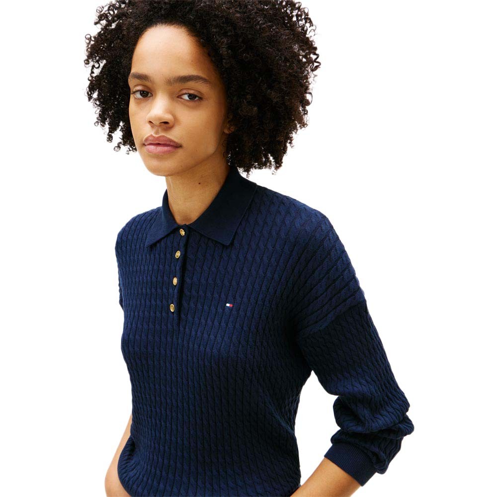 Pensata per look eleganti e femminili, questa polo Tommy Hilfiger in maglia treccia unisce texture lavorata e stile classico americano. La tonalità blu si abbina facilmente a gonne, jeans e pantaloni, mentre la lavorazione treccia aggiunge profondità e carattere al design. Una polo in maglia treccia senza tempo per chi ama qualità e dettagli curati.