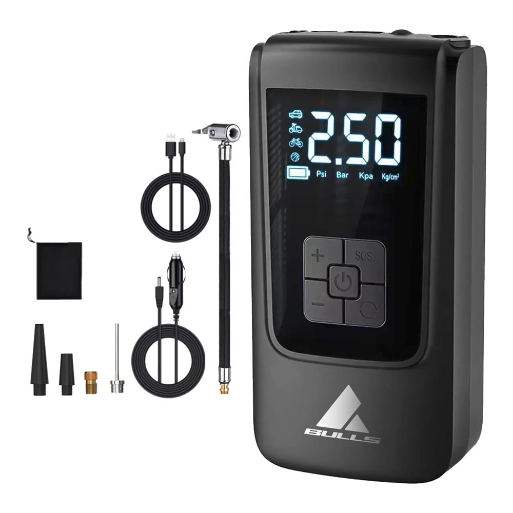 Il mini compressore Bulls è l'accessorio ideale per chi ama le e-bike e le attività outdoor. Compatto e potente, gonfia fino a 10 pneumatici con una carica. Include una pratica funzione power bank per ricaricare i tuoi dispositivi. Arresto automatico e 4 memorie per la pressione semplificano l'utilizzo. Compatibile con vari tipi di valvole.