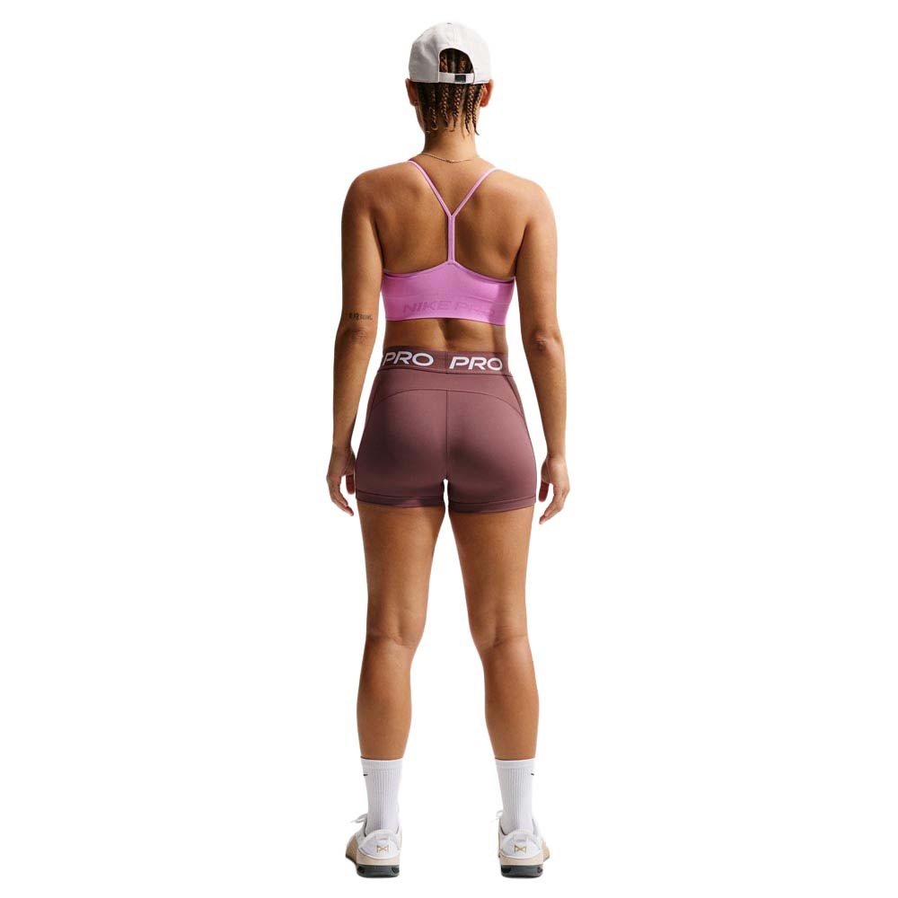 Il reggiseno sportivo Nike Pro Seamless rosa è pensato per allenamenti a basso impatto e comfort all day. Il tessuto morbido e leggero con tecnologia Dri FIT asciuga rapidamente, mentre le zone a costine laterali scolpiscono e stabilizzano senza rinunciare all’elasticità. Il supporto leggero avvolge con dolcezza, le coppe estraibili permettono di scegliere la copertura e il branding Nike Pro sulla fascia completa un look tecnico pulito.