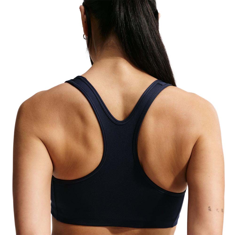 Sostegno affidabile per ogni routine quotidiana, il Reggiseno Sportivo Nike Swoosh donna Nero Dri-FIT a sostegno medio in 88 per cento poliestere riciclato e 12 per cento spandex con design a taglio all americana offre libertà di movimento totale e pelle asciutta durante palestra ciclismo indoor corsa e tennis. Il tessuto elasticizzato avvolge il corpo per un supporto ideale nelle attività a medio impatto senza compromessi.