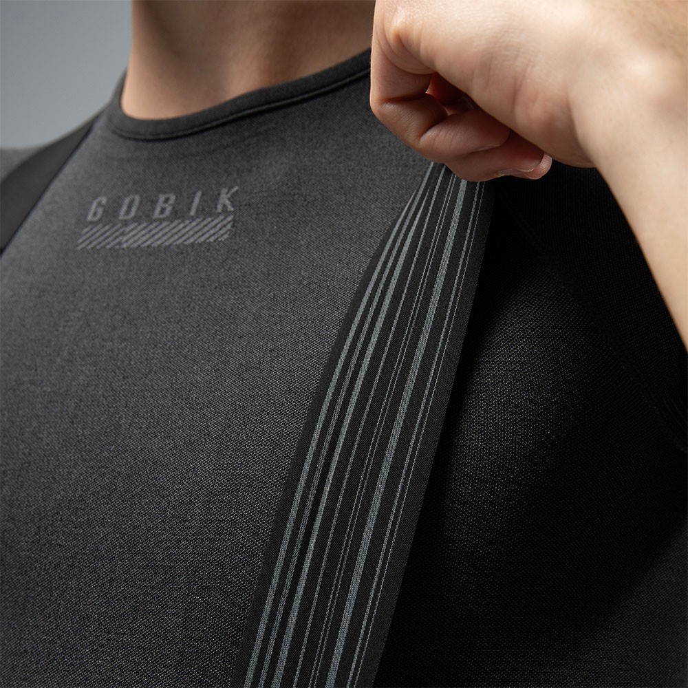 Il fondello Elastic Interface® Graphene, sviluppato in esclusiva per Gobik, garantisce performance elevate anche su percorsi di molte ore. Con schiume a densità differenziata e proprietà antibatteriche, offre supporto ottimale e gestione dell’umidità eccellente. Le nuove bretelle con filato di grafene migliorano la regolazione termica e neutralizzano gli odori, assicurando una vestibilità stabile e confortevole.