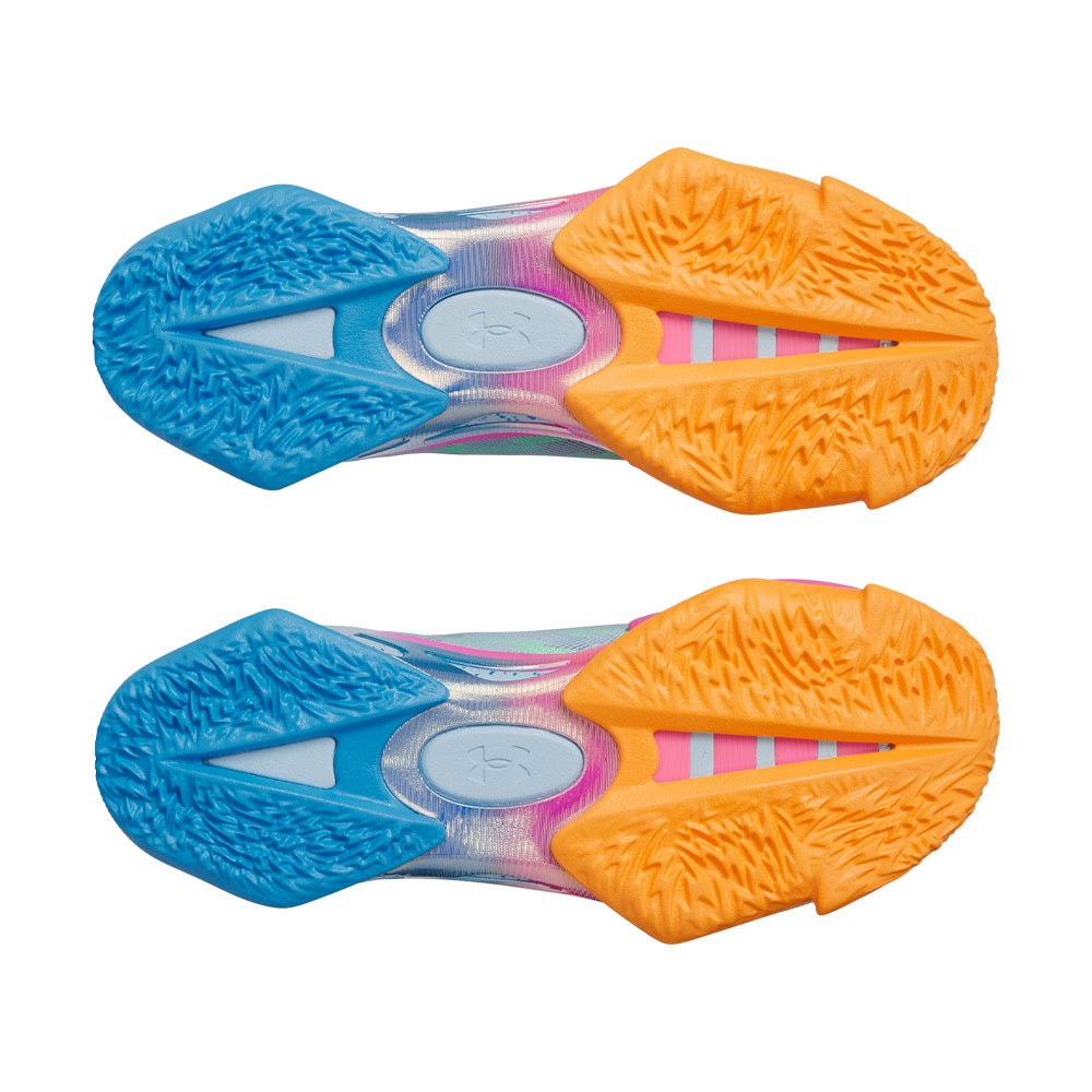 L’ammortizzazione UA Flow a doppia densità assicura un mix ideale tra reattività e comfort, riducendo il peso complessivo della scarpa e offrendo una trazione eccezionale senza l’utilizzo di una suola in gomma tradizionale. La soletta in schiuma a celle aperte migliora il comfort e la ventilazione, mantenendo il piede stabile e asciutto per tutta la durata del gioco.