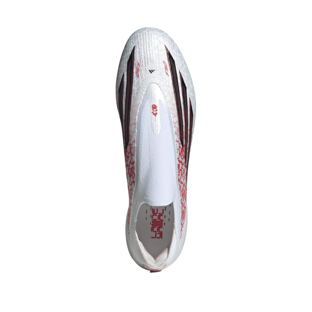 Le Adidas F50 Elite LL FG Bianco Nero Rosso sono scarpe da calcio uomo pensate per prestazioni elevate e gioco ad alta intensità. Il design senza lacci garantisce una superficie pulita per un contatto diretto con il pallone.